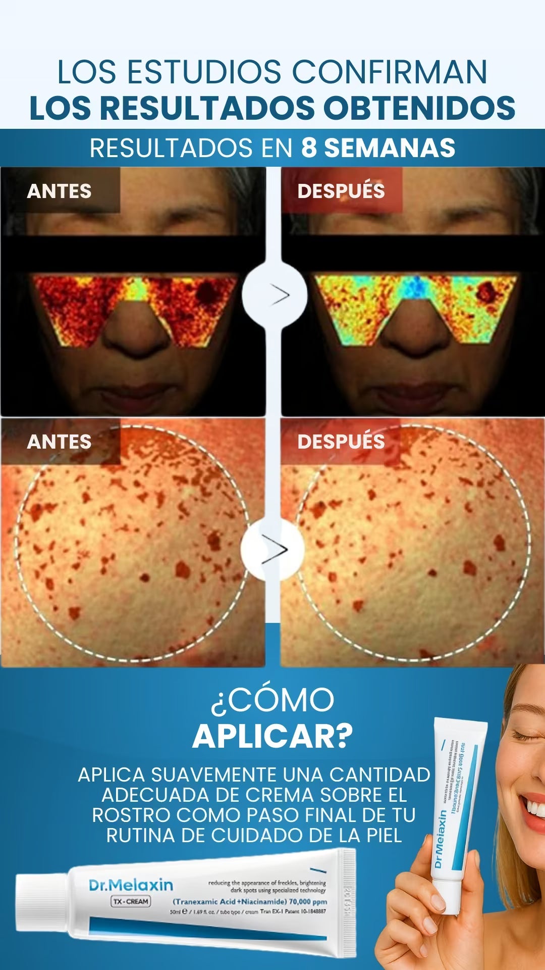 Los estudios clínicos muestran una mejora visible en la luminosidad a partir de la semana 5, con una reducción significativa de las manchas más oscuras tras 10 semanas de uso constante.
