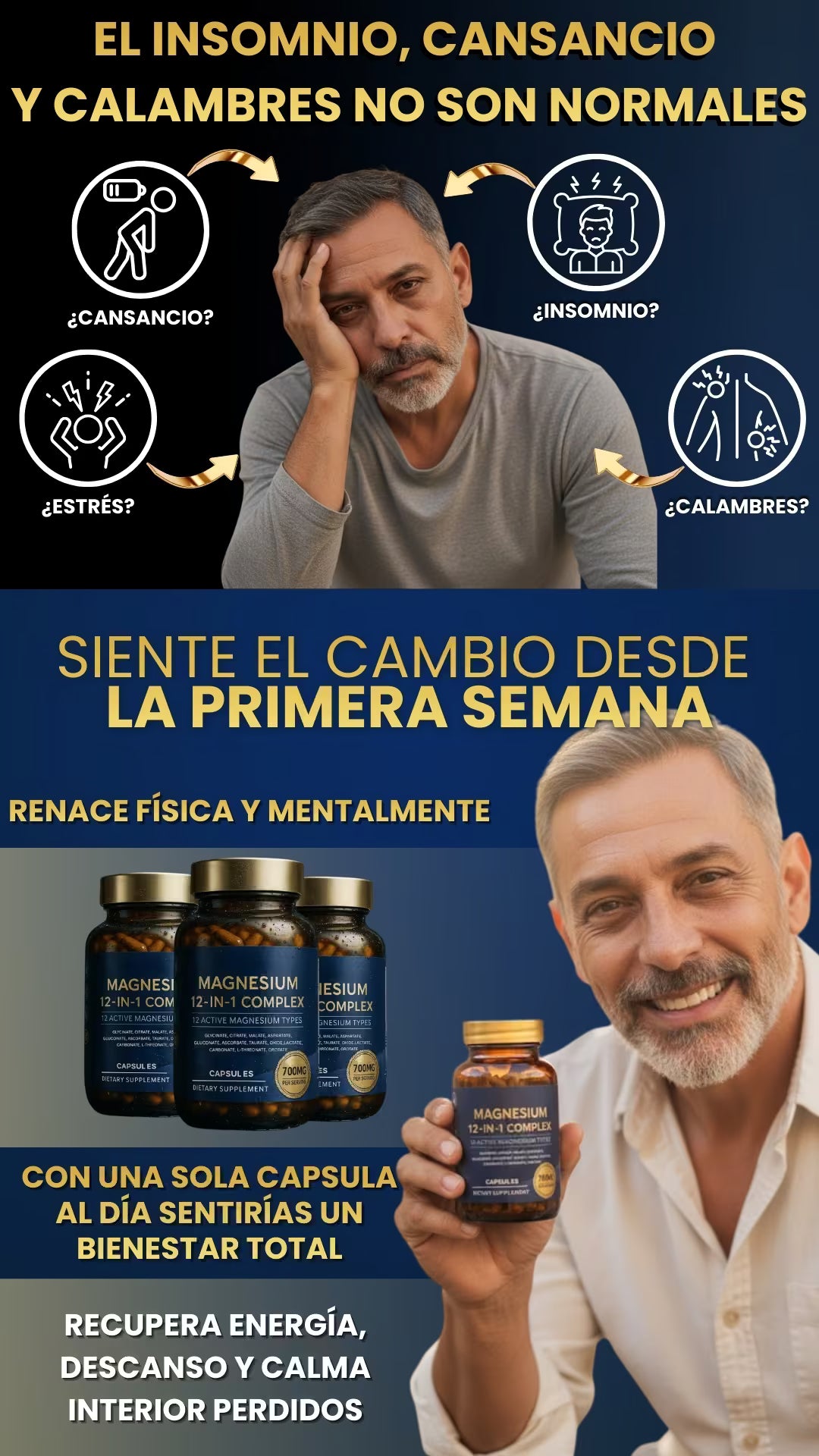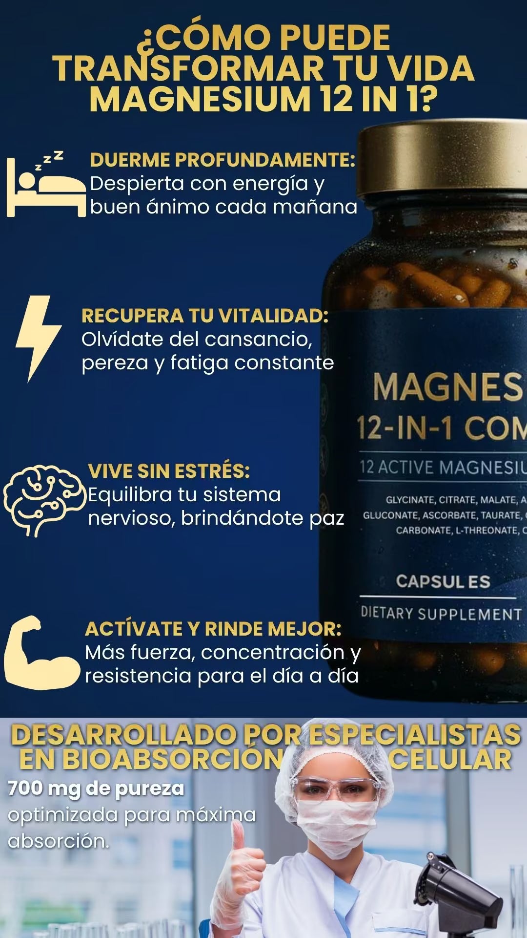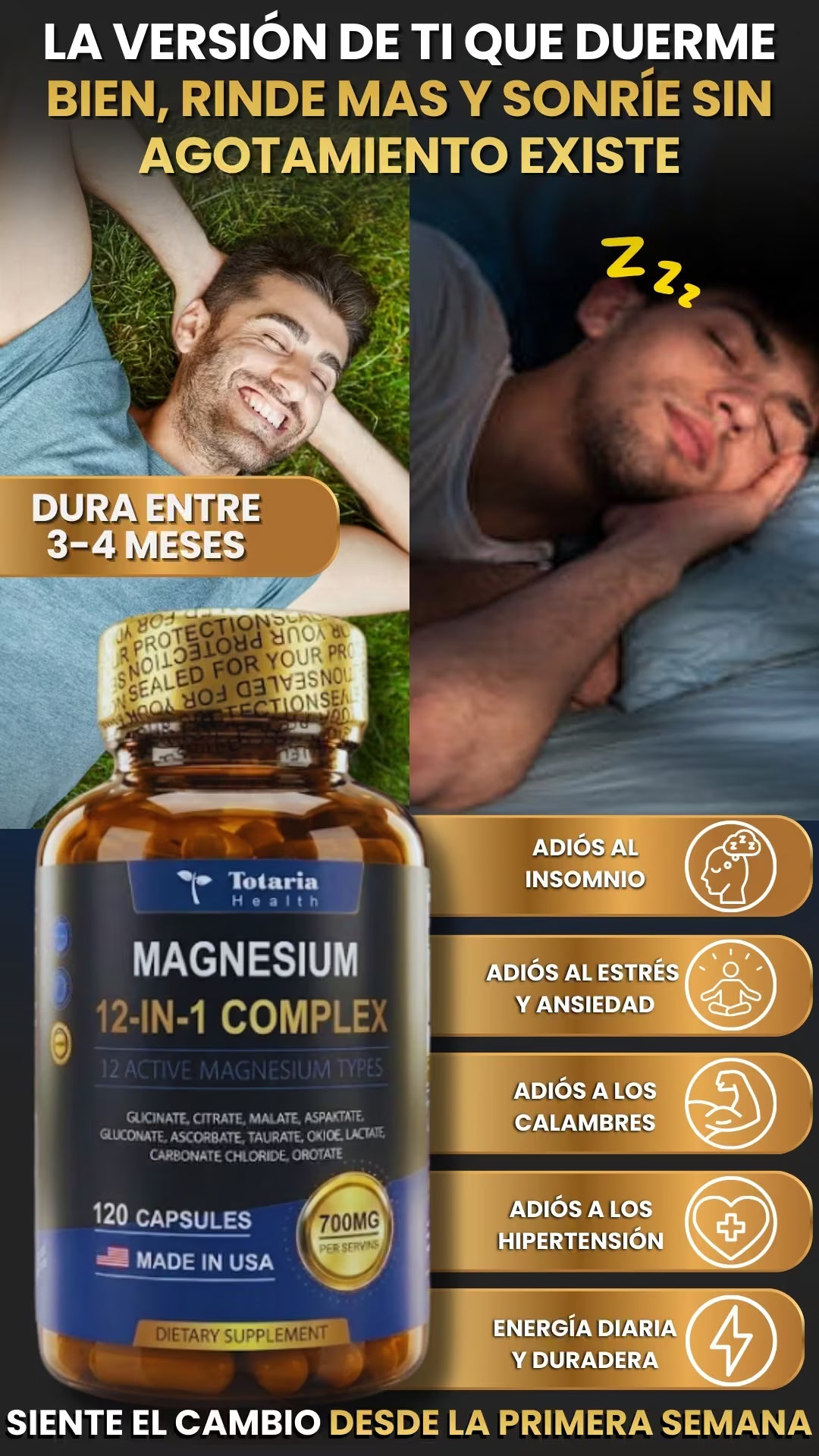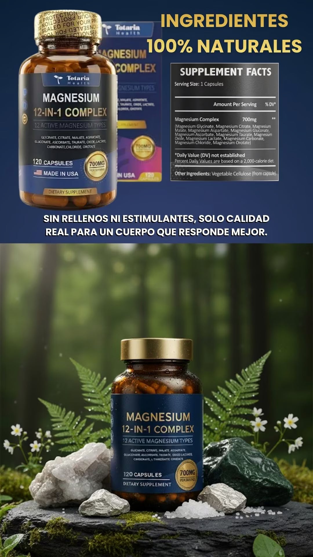 Descubre cómo Magnesio 12 en 1 ayuda a equilibrar tu cuerpo, mejorar tu descanso, controlar el estrés y apoyar la pérdida de peso natural desde la primera semana.