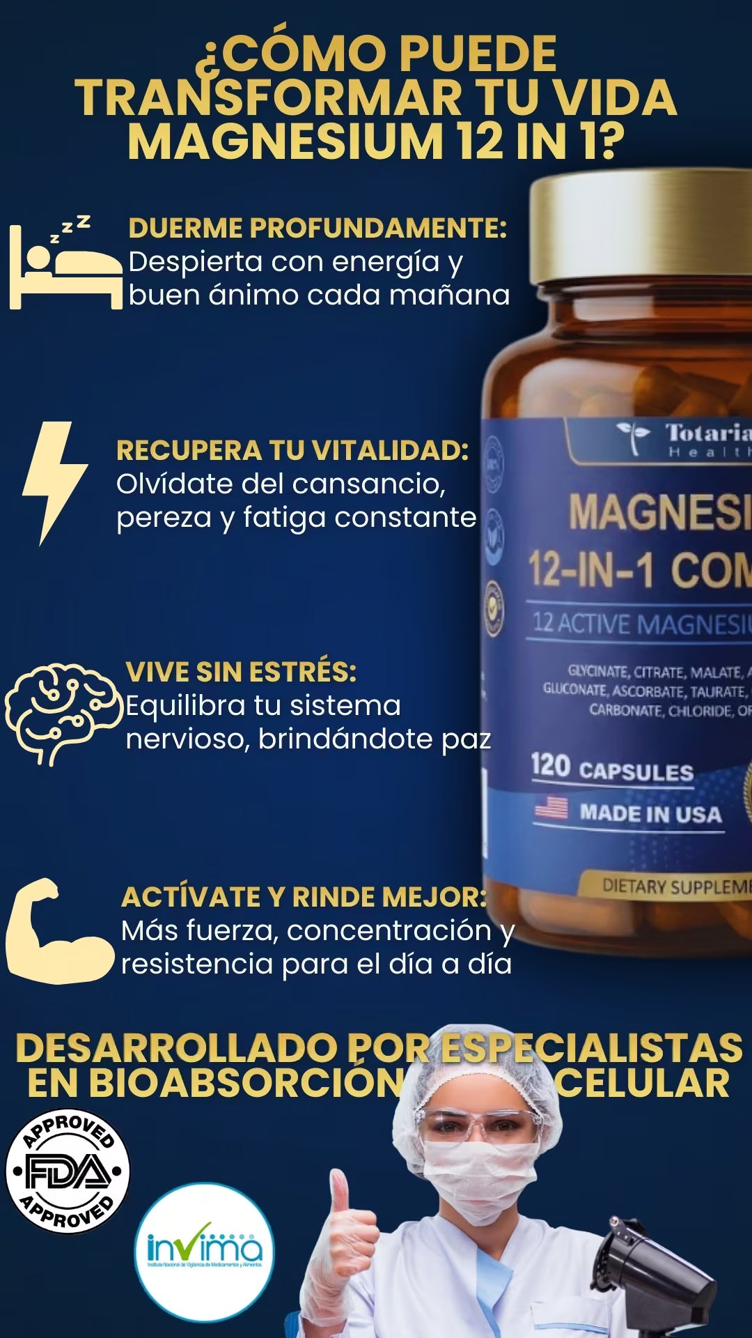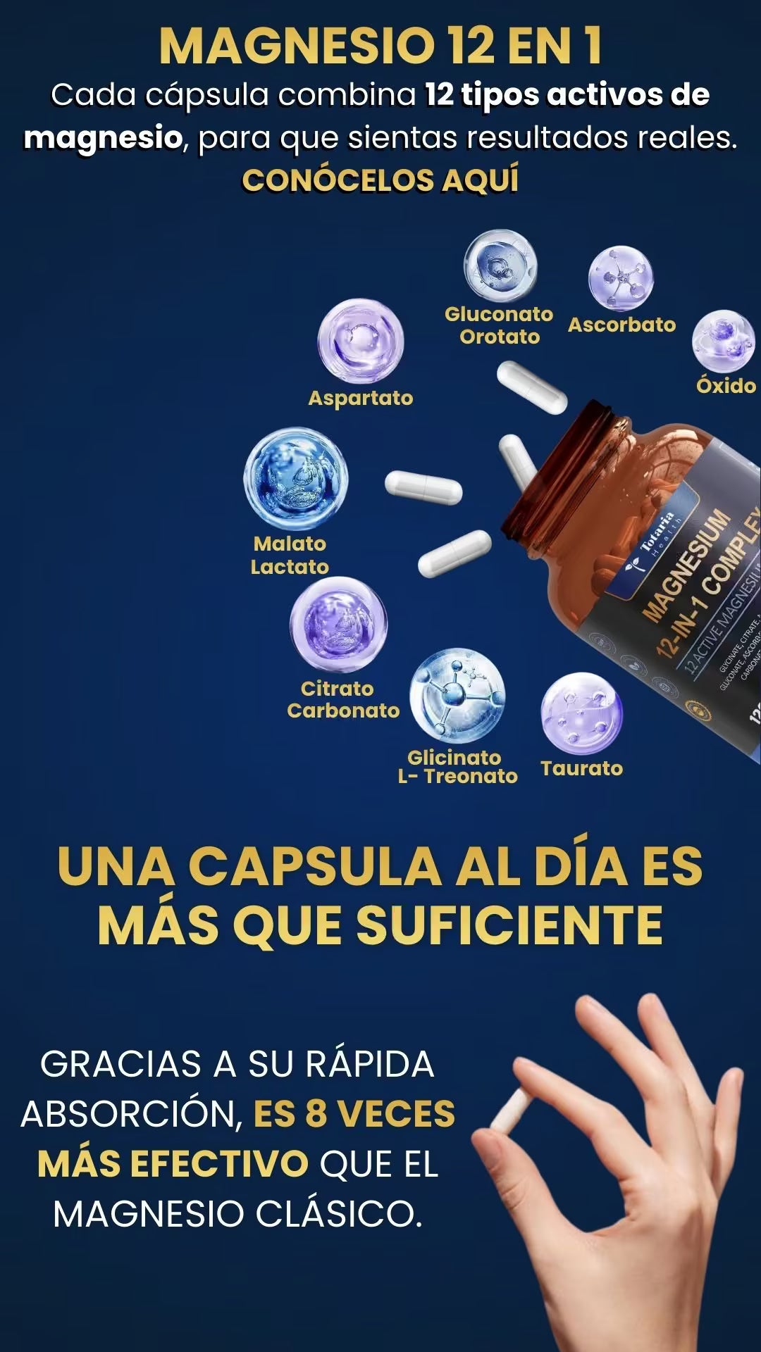 Descubre cómo Magnesio 12 en 1 ayuda a equilibrar tu cuerpo, mejorar tu descanso, controlar el estrés y apoyar la pérdida de peso natural desde la primera semana.