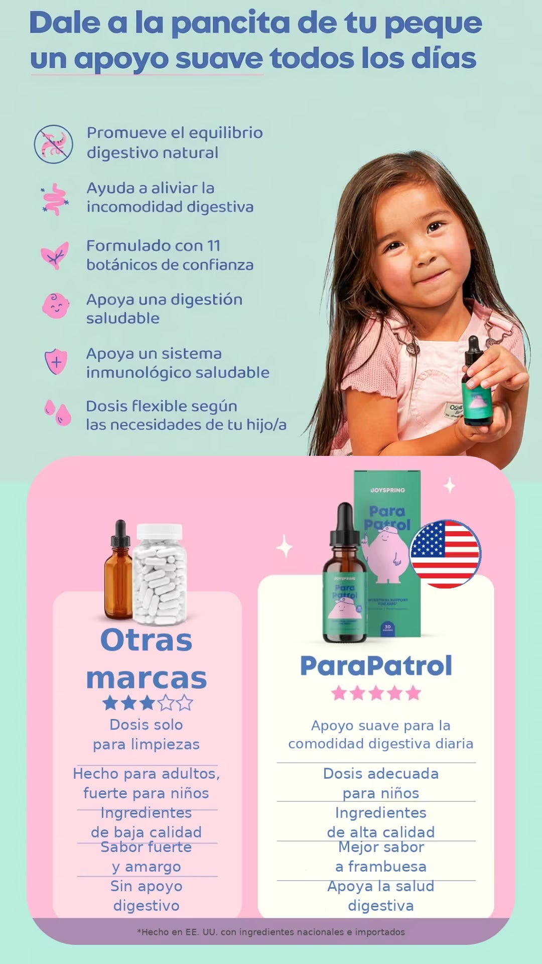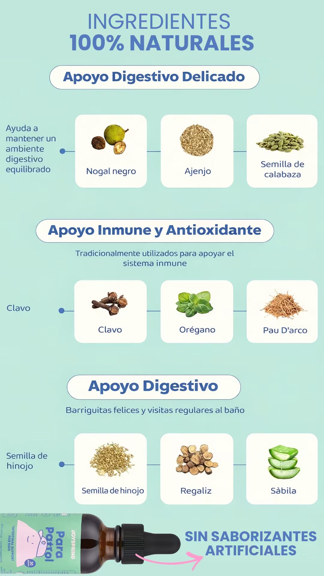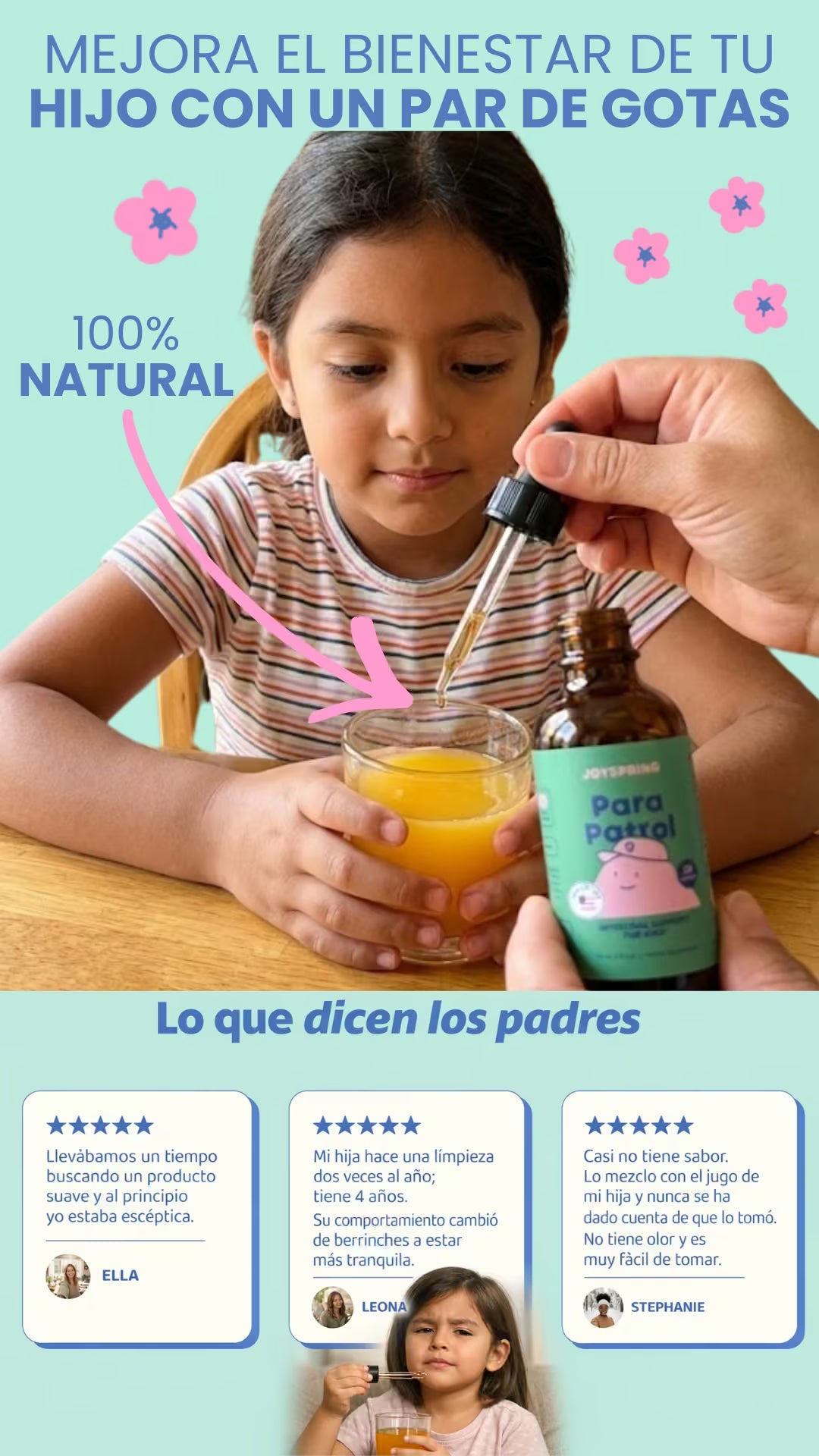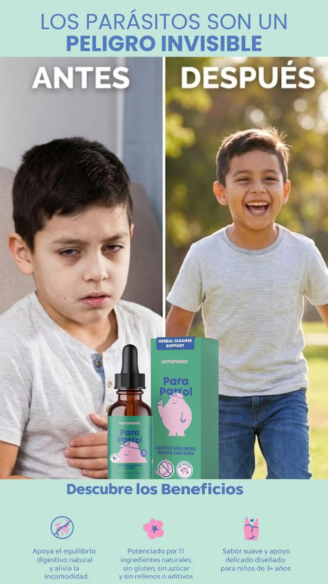 ParaPatrol es un suplemento pensado para apoyar el equilibrio digestivo y el bienestar diario en niños.