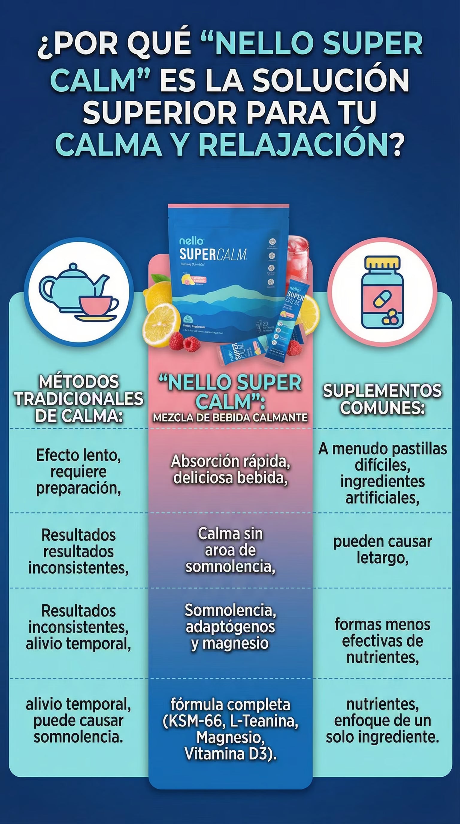 Descubre cómo Nello SuperCalm te acompaña a bajar revoluciones, sentir más tranquilidad y crear una pausa mental cuando más lo necesitas, desde los primeros días de uso.