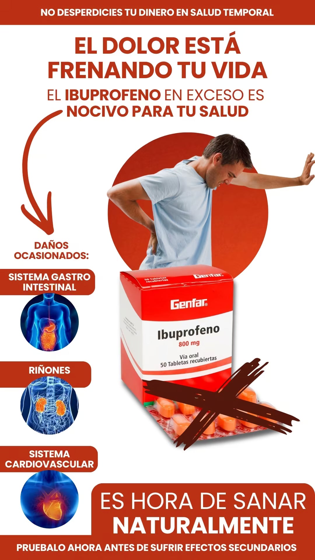 No, nuestra fórmula está diseñada con ingredientes naturales y cápsulas vegetales, evitando la irritación gástrica que suelen causar los analgésicos comunes.